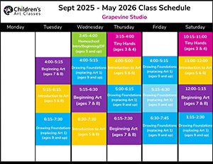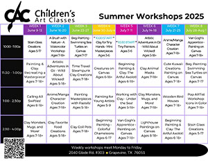 If you’re looking for art lessons, drawing classes, painting classes, or art summer camps, you’ll find we have one of the largest selections of children’s art classes in the Grapevine area. Our art programs are designed to help them explore more than 40 varieties of art, so they can find their passion and explore their creativity. Our programs are available for homeschooling and co-op education, summer workshops, birthday parties, and general classes for all ages and skill levels. Our art classes are dedicated to providing children with engaging activities that keep them busy and give them a solid foundation in the arts to enrich many aspects of their lives. Art is a life-long skill that can help children adopt a new hobby or find a potential career opportunity. Explore our art programs for kids and find the option that best suits your child!